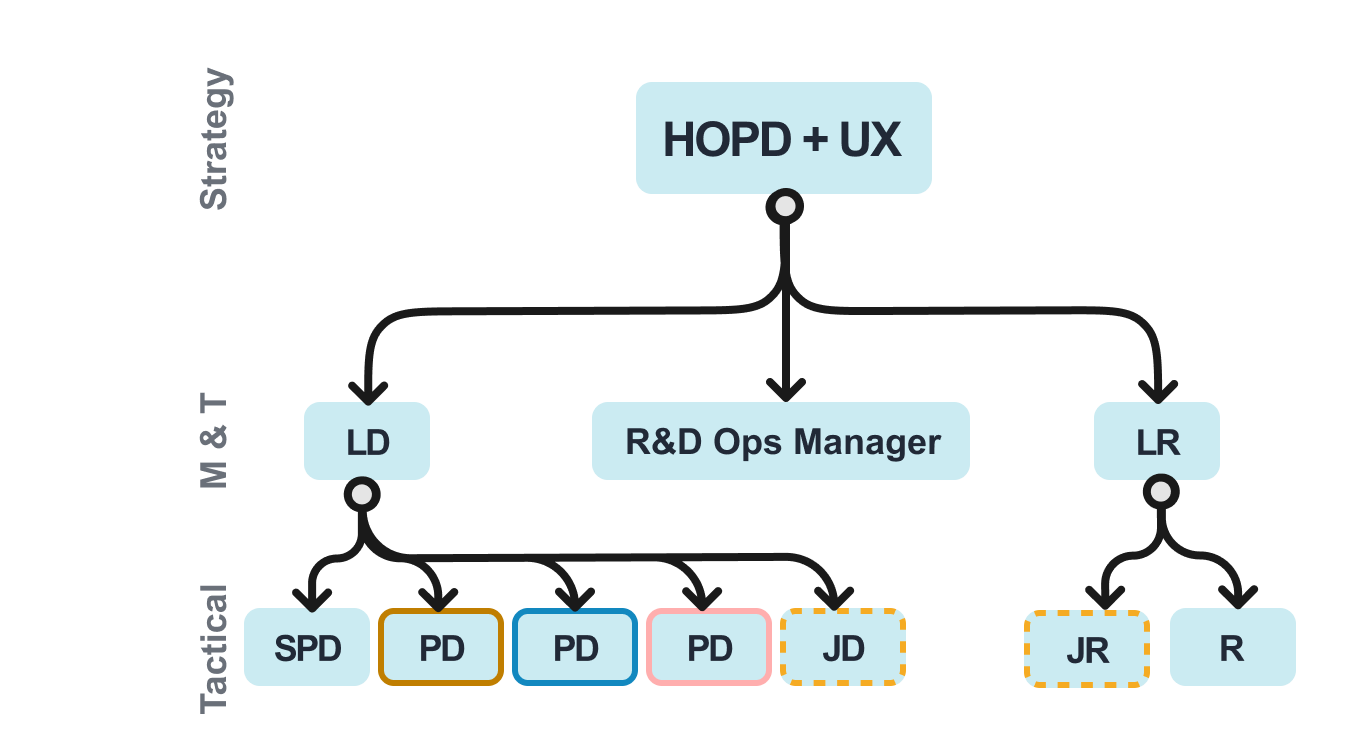 Scaled and restructured a multi-disciplinary Design and Research organisation, introducing management layers and discipline ownership to support global growth — delivered without redundancies.